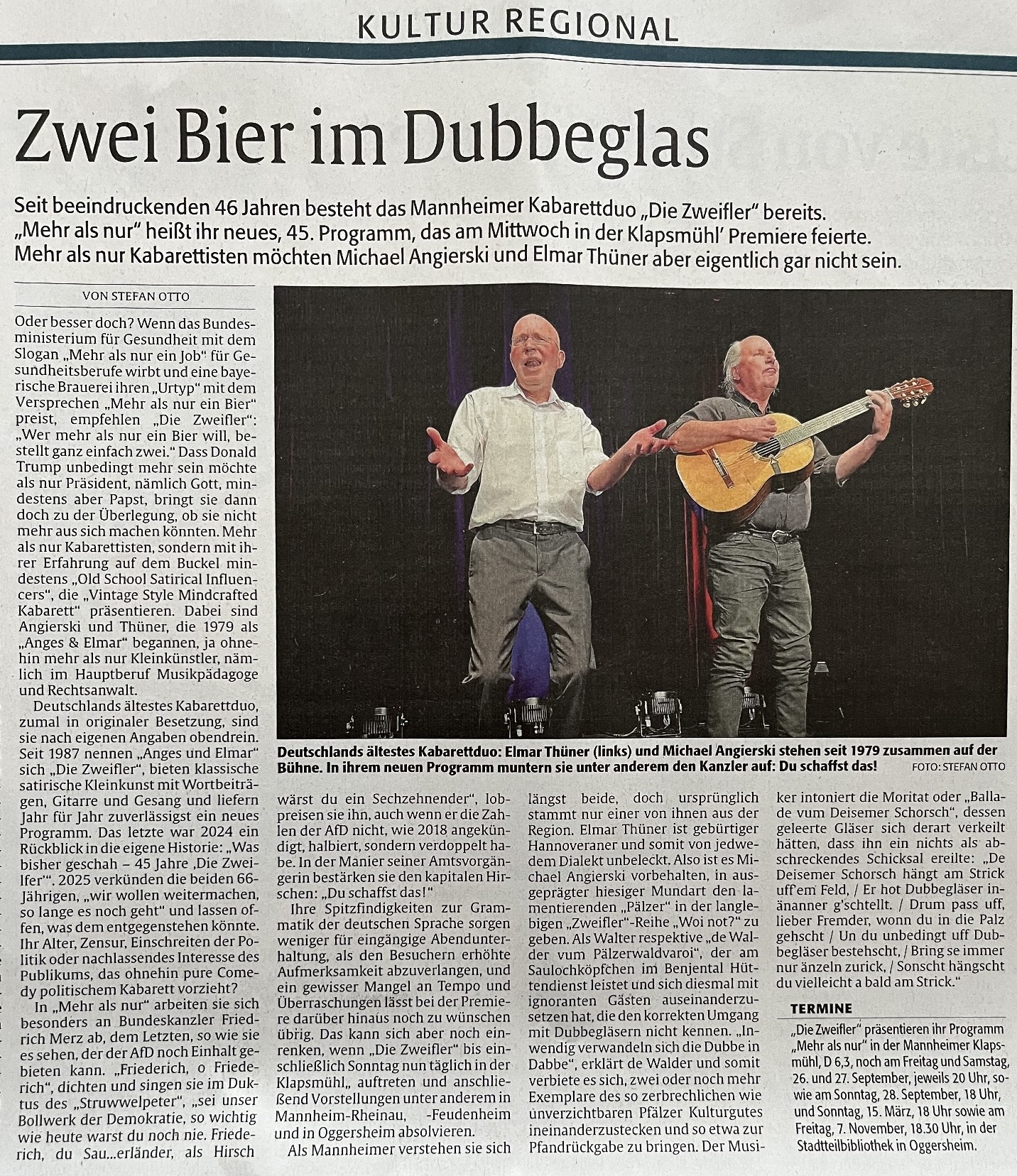 "Zwei Bier im Dubbeglas" - Premierenkritik aus der "Rheinpfalz" vom 26.09.2025